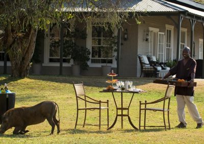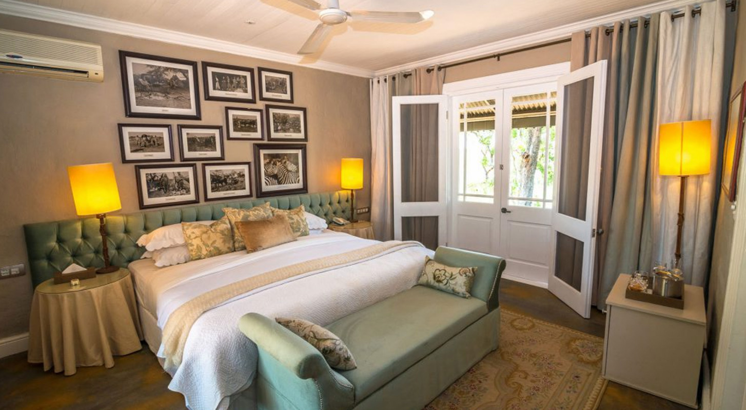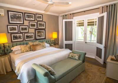 The spirit of safari comes alive at historic &Beyond Kirkman’s Kamp. Step back in time into the gracious early Transvaal atmosphere of this original 1920s homestead and marvel at the spectacular views of the unspoiled landscape that surrounds the Sand River from each of the 12 guest suites. Rolling lawns carve out a niche in a wild and tumbling wilderness that host memorable game viewing in one of the most renowned Big Five wildlife regions in the world. Spacious sitting, dining and bar areas steeped in the colonial atmosphere of gracious style and luxury contain mementoes of a time long past, while the untamed wilderness outside whispers a promise of adventures not to be forgotten. A sparkling swimming pool boasts a magnificent view over the valley of the Sand River.